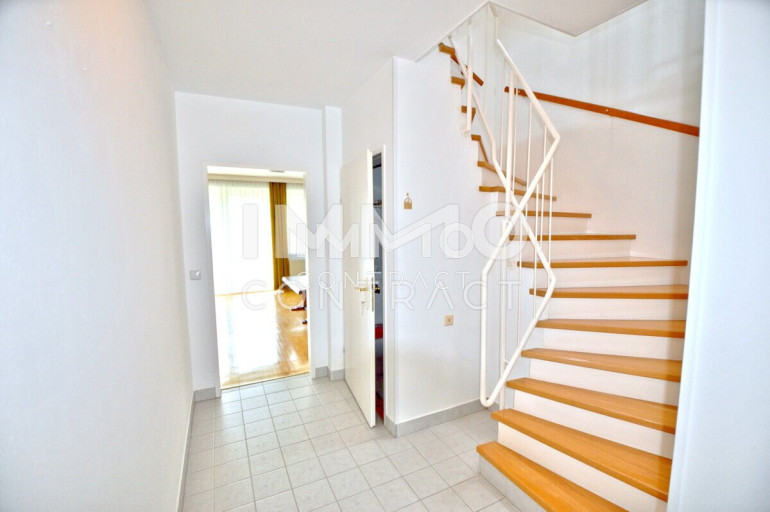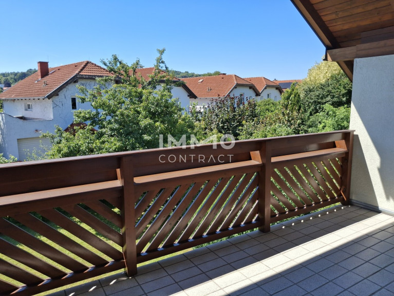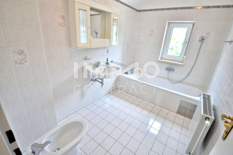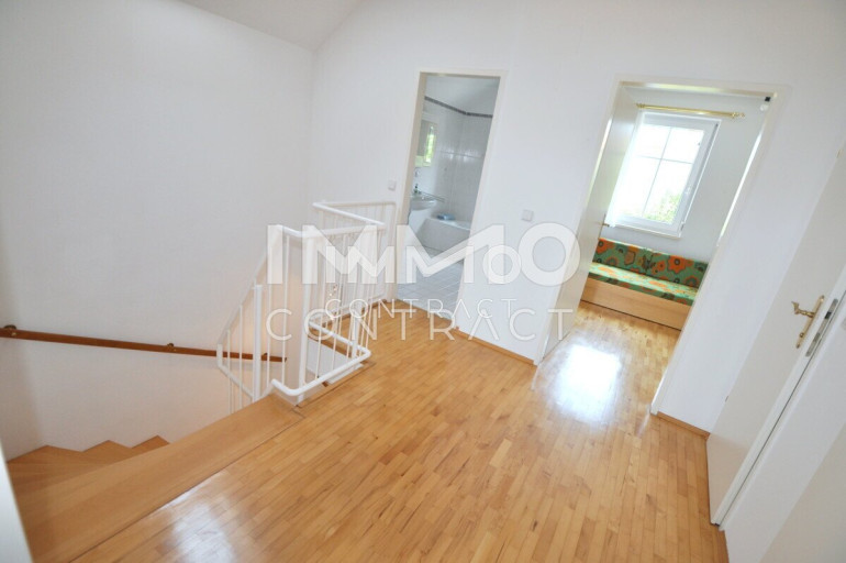 Das Obergeschoss beeindruckt mit drei hellen und freundlichen Zimmern, eines davon verfügt über eine großzügige Loggia, die zum Verweilen einlädt. Ein begehbarer Kleiderschrank sorgt für ausreichend Stauraum und Ordnung. Das große Badezimmer ist mit einer Badewanne, einem Bidet und einem separaten WC ausgestattet und bietet somit höchsten Komfort.