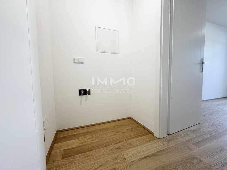 Der offene Wohn- und Essbereich mit direktem Zugang zur großzügigen Terrasse schafft ein helles, einladendes Raumgefühl. Das Schlafzimmer ist ruhig gelegen und bietet direkten Blick ins Grüne. Ein praktischer Abstellraum sowie ein stilvolles Badezimmer mit hochwertiger Sanitärausstattung runden den Grundriss ab.