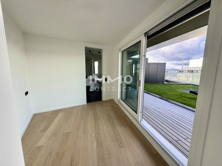 Great emphasis is placed on individuality in the fittings: you can choose between three different design lines as well as four parquet flooring options. The building also features state-of-the-art technology: heating and cooling are provided via component activation (floor slabs), and with the Smart Home solution, sun protection and room lighting, as well as additional features at the buyer’s request, can be controlled.