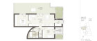 Von einem kleinen Flur erreicht man Abstellraum, Badezimmer, WC und Schlafzimmer. Von diesem Schlafzimmer erreicht man eine Terrasse.