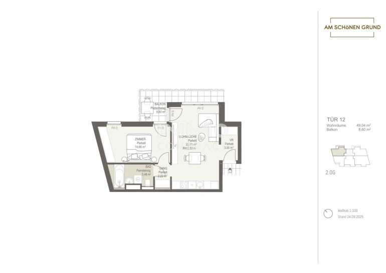 Mit dem Projekt „Am schönen Grund“ entsteht ein exklusives Wohnensemble aus 30 stilvollen Eigentumswohnungen, das urbanes Lebensgefühl mit naturnaher Wohnqualität vereint. Die Auswahl reicht von kompakten Garçonnièren für Singles oder Kapitalanleger bis hin zu großzügigen 4-Zimmer-Familienwohnungen – für jedes Bedürfnis die passende Lösung.