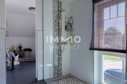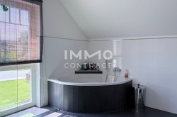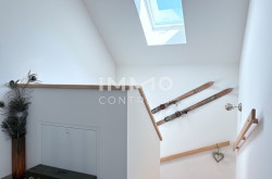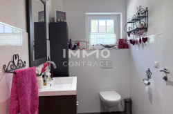 Ein offenes Wohn-Esszimmer mit einer großzügigen Küche und großen Fenstern sorgen für eine ausreichende Belichtung und das freundliche Raumgefühlt eines neugebauten Hauses. Sowohl im Erdgeschoß als auch im Obergeschoß gibt es je ein Badezimmer und WC. Zwei Schlafzimmer im Obergeschoß. Ein an die Küche angeschlossener Hauswirtschaftsraum sowie ein Wellnessbereich Obergeschoß runden das Raumangebot komfortabel ab.