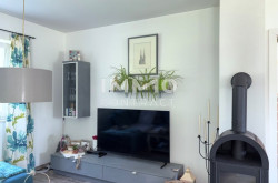 Die Beheizung und Warmwasseraufbereitung erfolgen über eine Luft-Wasser-Wärmepumpe (Fußbodenheizung), darüber hinaus gibt es einen zusätzlichen Kaminofen im Wohnzimmer.