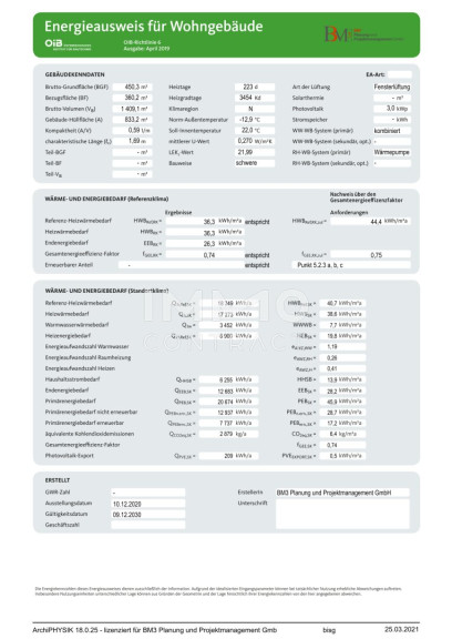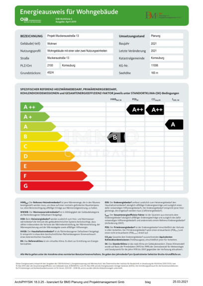 | Heizwärmebedarf: | B 44,40 kWh/m²a |