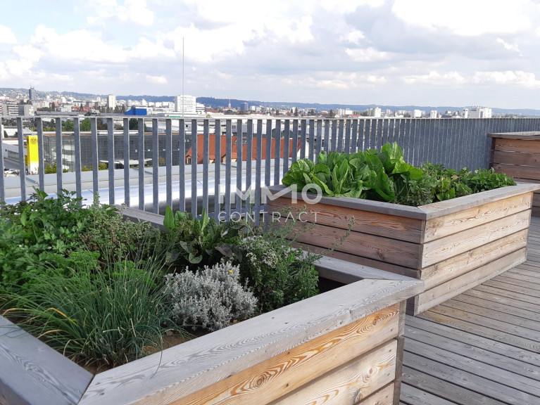 Die Wohnhausanlage Reininghaus Zehn verfügt über Photovoltaik und ein begrüntes Flachdach mit Möglichkeit für "urban gardening" in den zahlreichen Hochbeeten sowie eine Sonnenterrasse für die zukünftigen Bewohner des Hauses.