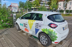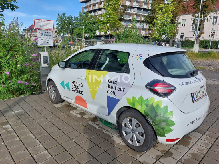 Ein zukunftsweisendes Mobilitätskonzept baut den öffentlichen Verkehr aus und investiert in die E-Mobilität mi tE-Car-Sharing direkt vor dem Gebäude.