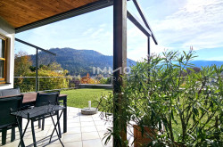 Vom Wohnzimmer betreten Sie die teilweise überdachte Terrasse und den Garten mit atemberaubendem Blick über die Wälder.