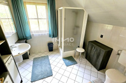 Über eine offene Holzstiege gelangen Sie ins 1. Obergeschoß mit weiteren 3 Schlafzimmern, Bad mit Dusche und WC, Vorraum und großem Südbalkon.