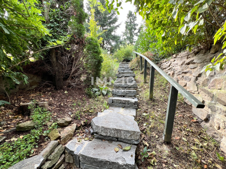 Das 1.242 m² große Grundstück steigt terrassenartig an und eröffnet dadurch immer neue, reizvolle Perspektiven – sei es auf blühende Gärten, sonnige Sitzplätze oder stille Rückzugsorte im Schatten alter Bäume. Hier lässt sich Natur erleben – ganz privat und doch mit viel Weite.