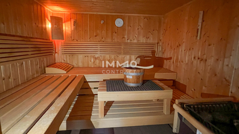 Im Dachgeschoss erwarten Sie zwei Schlafzimmer mit Balkonzugang, ein Ankleideraum und ein helles Bad mit Eckwanne, Dusche und WC. Der ausgebaute Dachboden – ausgestattet mit Dusche/WC und einem südseitigen Panoramafenster – eignet sich ideal als Büro, Atelier oder Jugendzimmer. Über den beheizten Wintergarten gelangen Sie in ein charmantes Nebengebäude mit Sauna, Dusche, WC, Ruhebereich mit Holzofen und einem Gästezimmer – ein Refugium für Erholung oder kreative Rückzüge.