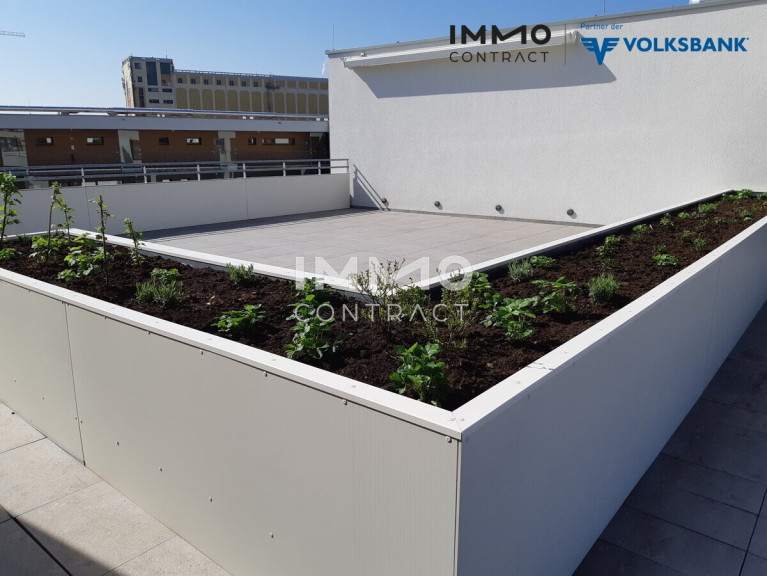 Die Wohnhausanlage Reininghaus Zehn verfügt über Photovoltaik und ein begrüntes Flachdach mit Möglichkeit für "urban gardening" in den zahlreichen Hochbeeten sowie eine Sonnenterrasse für die zukünftigen Bewohner des Hauses.