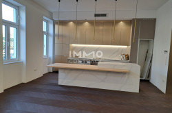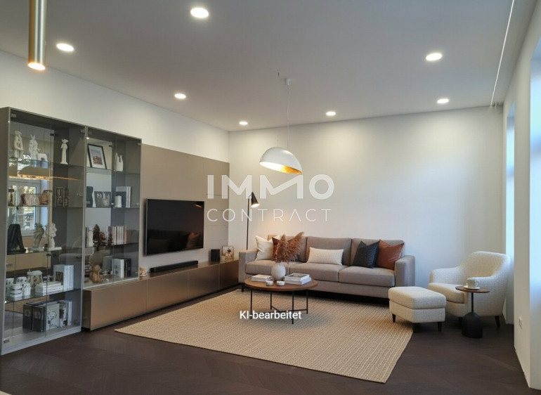Das Highlight ist das große Wohnzimmer mit Einbauten und die Luxusküche mit Frühstücksbar. Sie hören hier keine Verkehrsgeräusche, da eigene Schallschutzfenster eingebaut sind.
