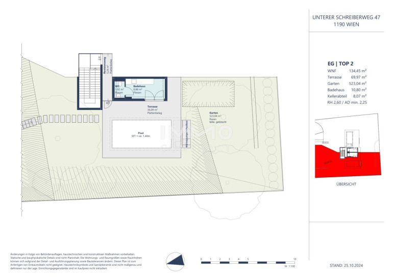 Der exklusive Privatpool im ca. 523 m² großen Eigengarten und das dazugehörige Badehaus sind ein absolutes Highlight bei dieser Wohnung.