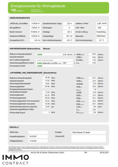 | Heizwärmebedarf: | B 29,43 kWh/m²a |