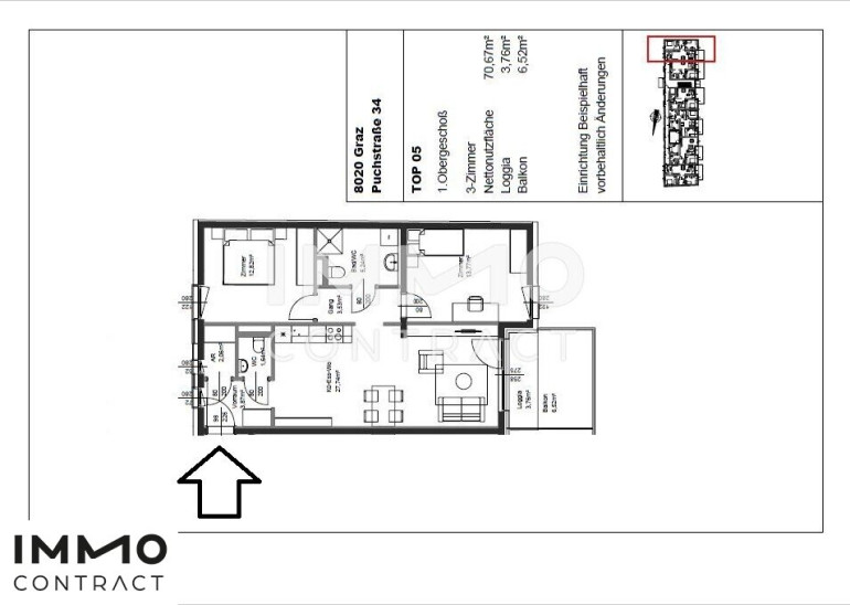 Erstbezug: geförderte 3 Zimmer Wohnung mit Balkon in ruhiger und zentraler Lage - Puchstraße 34 - Top 05