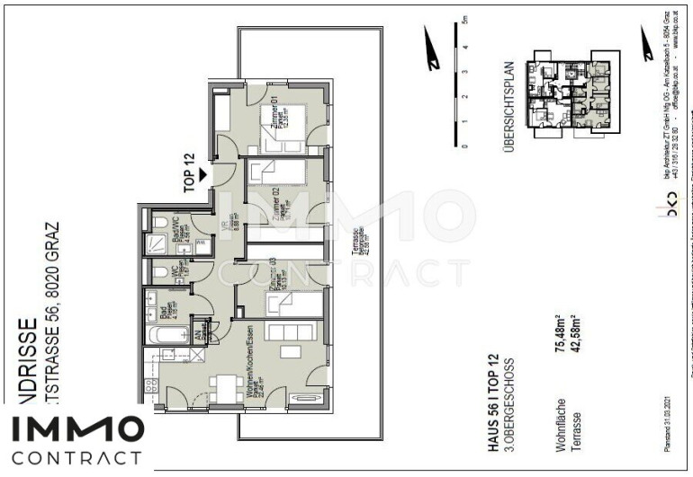 Neuwertige, geförderte 4 Zimmer-Wohnung mit großer TERRASSE in Eggenberg - Eckertstraße 56 - Top 12