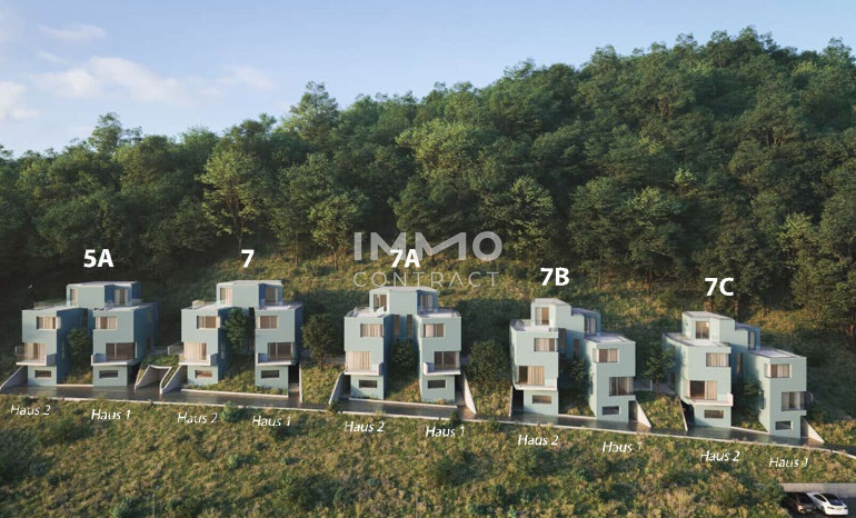 Das Projekt umfasst insgesamt zehn moderne Doppelhaushälften, die durch ein klar gegliedertes Wohnkonzept und großzügige Freiflächen überzeugen. Balkone und Terrassen schaffen wertvolle Rückzugsorte im Freien und unterstreichen den offenen, lichtdurchfluteten Charakter der Häuser. Die harmonische Architektur fügt sich dabei elegant in die Hanglage ein und eröffnet attraktive Ausblicke Richtung Donau.