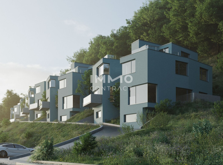 Das Projekt umfasst insgesamt zehn moderne Doppelhaushälften, die durch ein klar gegliedertes Wohnkonzept und großzügige Freiflächen überzeugen. Balkone und Terrassen schaffen wertvolle Rückzugsorte im Freien und unterstreichen den offenen, lichtdurchfluteten Charakter der Häuser. Die harmonische Architektur fügt sich dabei elegant in die Hanglage ein und eröffnet attraktive Ausblicke Richtung Donau.