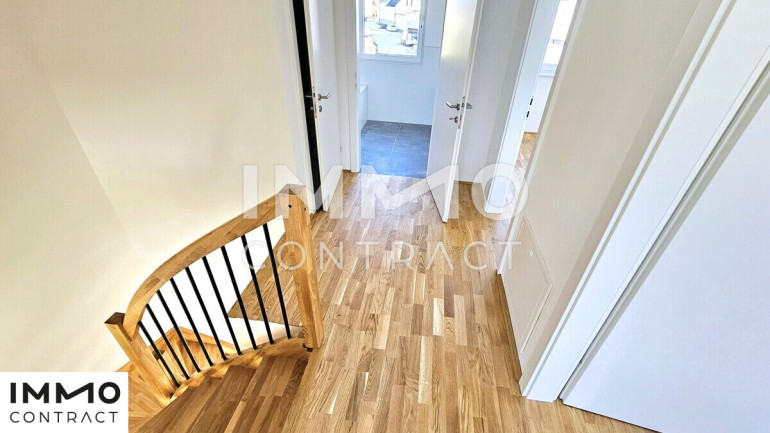 Helle Wohnräume, wohnliche Eichenparkettböden, elegantes Feinsteinzeug, hochwertige Sanitäranlagen und elektrische Außenjalousien repräsentieren die qualitätvolle Ausstattung.