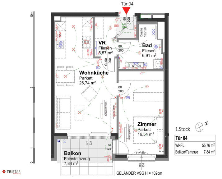 TOP 4: 2 Zimmer, ca. 56 m² + Balkon ca. 8 m² = EUR 399.900