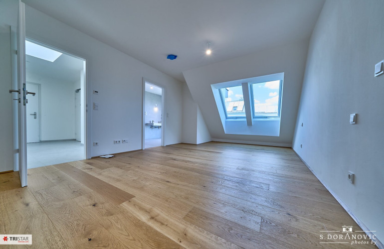 Das Penthouse Top 8 erstreckt sich über die gesamte Ebene des 2. Dachgeschosses – ohne direkte Nachbarn – und bietet dadurch ein Höchstmaß an Privatsphäre.