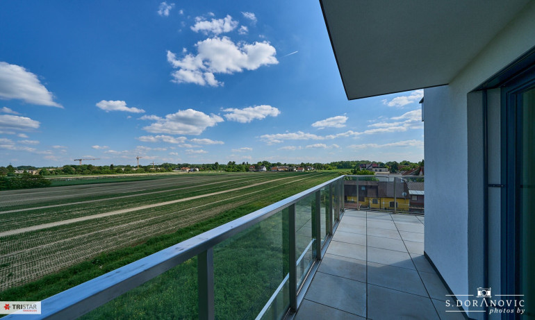 Die Wohnung Top 4 ist ideal ausgerichtet: sowohl von beiden Zimmern als auch vom Balkon – der direkt von der Wohnküche aus begehbar ist –genießen Sie einen wunderbaren Blick auf das angrenzende grüne Feld sowie eine perfekte Himmelsausrichtung!