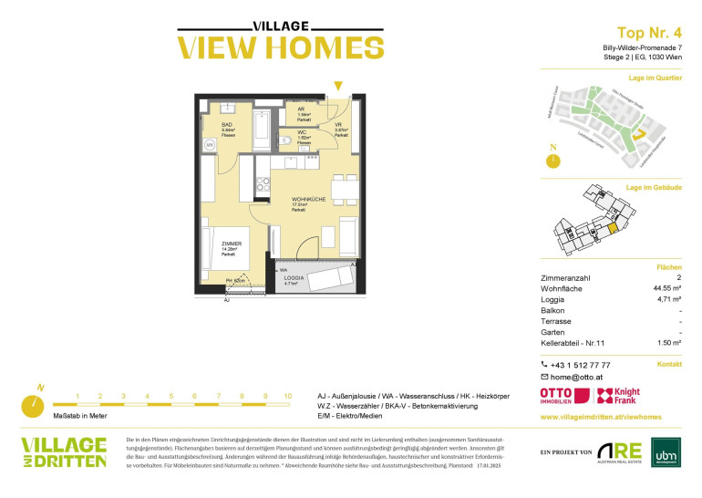 Dank der Nähe zur S-Bahn-Haltestelle St. Marx, der Straßenbahnlinie 18 und weiteren öffentlichen Verkehrsmitteln sowie dem Autobahnanschluss an die A23 ist VIEW HOMES sehr gut an das öffentliche Verkehrsnetz angebunden: So ist etwa der Hauptbahnhof nur sieben Minuten mit der Straßenbahn entfernt. Ebenso wird mit der Verlängerung der Straßenbahnlinie 18 von der U3-Station Schlachthausgasse zur U2-Station Stadion bis Herbst 2026 eine neue Direktverbindung in den grünen Prater geschaffen. Ein optimaler Standort zum Leben. Die Billy-Wilder-Promenade befindet sich am südöstlichen Kopfende des neu errichteten zentralen Bert-Brecht-Parks. Moderne Einkaufs-, Freizeit- und Gastronomieflächen erwarten Sie in fußläufiger Entfernung in den Erdgeschoßzonen des gesamten Quartiers und in den DOCKS am Landstraßer Gürtel.Beschreibung der Immobilie