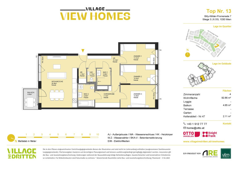 Dank der Nähe zur S-Bahn-Haltestelle St. Marx, der Straßenbahnlinie 18 und weiteren öffentlichen Verkehrsmitteln sowie dem Autobahnanschluss an die A23 ist VIEW HOMES sehr gut an das öffentliche Verkehrsnetz angebunden: So ist etwa der Hauptbahnhof nur sieben Minuten mit der Straßenbahn entfernt. Ebenso wird mit der Verlängerung der Straßenbahnlinie 18 von der U3-Station Schlachthausgasse zur U2-Station Stadion bis Herbst 2026 eine neue Direktverbindung in den grünen Prater geschaffen. Ein optimaler Standort zum Leben. Die Billy-Wilder-Promenade befindet sich am südöstlichen Kopfende des neu errichteten zentralen Bert-Brecht-Parks. Moderne Einkaufs-, Freizeit- und Gastronomieflächen erwarten Sie in fußläufiger Entfernung in den Erdgeschoßzonen des gesamten Quartiers und in den DOCKS am Landstraßer Gürtel.Beschreibung der Immobilie