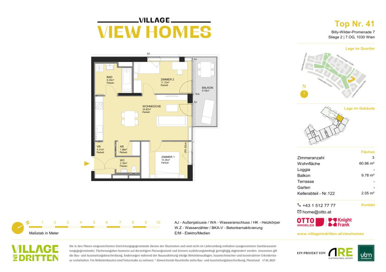 Dank der Nähe zur S-Bahn-Haltestelle St. Marx, der Straßenbahnlinie 18 und weiteren öffentlichen Verkehrsmitteln sowie dem Autobahnanschluss an die A23 ist VIEW HOMES sehr gut an das öffentliche Verkehrsnetz angebunden: So ist etwa der Hauptbahnhof nur sieben Minuten mit der Straßenbahn entfernt. Ebenso wird mit der Verlängerung der Straßenbahnlinie 18 von der U3-Station Schlachthausgasse zur U2-Station Stadion bis Herbst 2026 eine neue Direktverbindung in den grünen Prater geschaffen. Ein optimaler Standort zum Leben. Die Billy-Wilder-Promenade befindet sich am südöstlichen Kopfende des neu errichteten zentralen Bert-Brecht-Parks. Moderne Einkaufs-, Freizeit- und Gastronomieflächen erwarten Sie in fußläufiger Entfernung in den Erdgeschoßzonen des gesamten Quartiers und in den DOCKS am Landstraßer Gürtel.Beschreibung der Immobilie