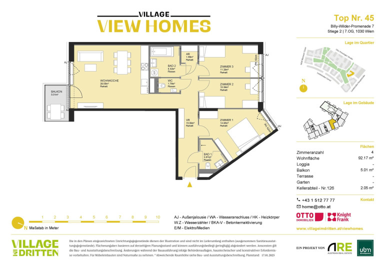 Dank der Nähe zur S-Bahn-Haltestelle St. Marx, der Straßenbahnlinie 18 und weiteren öffentlichen Verkehrsmitteln sowie dem Autobahnanschluss an die A23 ist VIEW HOMES sehr gut an das öffentliche Verkehrsnetz angebunden: So ist etwa der Hauptbahnhof nur sieben Minuten mit der Straßenbahn entfernt. Ebenso wird mit der Verlängerung der Straßenbahnlinie 18 von der U3-Station Schlachthausgasse zur U2-Station Stadion bis Herbst 2026 eine neue Direktverbindung in den grünen Prater geschaffen. Ein optimaler Standort zum Leben. Die Billy-Wilder-Promenade befindet sich am südöstlichen Kopfende des neu errichteten zentralen Bert-Brecht-Parks. Moderne Einkaufs-, Freizeit- und Gastronomieflächen erwarten Sie in fußläufiger Entfernung in den Erdgeschoßzonen des gesamten Quartiers und in den DOCKS am Landstraßer Gürtel.Beschreibung der Immobilie
