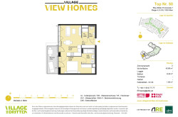Dank der Nähe zur S-Bahn-Haltestelle St. Marx, der Straßenbahnlinie 18 und weiteren öffentlichen Verkehrsmitteln sowie dem Autobahnanschluss an die A23 ist VIEW HOMES sehr gut an das öffentliche Verkehrsnetz angebunden: So ist etwa der Hauptbahnhof nur sieben Minuten mit der Straßenbahn entfernt. Ebenso wird mit der Verlängerung der Straßenbahnlinie 18 von der U3-Station Schlachthausgasse zur U2-Station Stadion bis Herbst 2026 eine neue Direktverbindung in den grünen Prater geschaffen. Ein optimaler Standort zum Leben. Die Billy-Wilder-Promenade befindet sich am südöstlichen Kopfende des neu errichteten zentralen Bert-Brecht-Parks. Moderne Einkaufs-, Freizeit- und Gastronomieflächen erwarten Sie in fußläufiger Entfernung in den Erdgeschoßzonen des gesamten Quartiers und in den DOCKS am Landstraßer Gürtel.Beschreibung der Immobilie