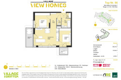 Dank der Nähe zur S-Bahn-Haltestelle St. Marx, der Straßenbahnlinie 18 und weiteren öffentlichen Verkehrsmitteln sowie dem Autobahnanschluss an die A23 ist VIEW HOMES sehr gut an das öffentliche Verkehrsnetz angebunden: So ist etwa der Hauptbahnhof nur sieben Minuten mit der Straßenbahn entfernt. Ebenso wird mit der Verlängerung der Straßenbahnlinie 18 von der U3-Station Schlachthausgasse zur U2-Station Stadion bis Herbst 2026 eine neue Direktverbindung in den grünen Prater geschaffen. Ein optimaler Standort zum Leben. Die Billy-Wilder-Promenade befindet sich am südöstlichen Kopfende des neu errichteten zentralen Bert-Brecht-Parks. Moderne Einkaufs-, Freizeit- und Gastronomieflächen erwarten Sie in fußläufiger Entfernung in den Erdgeschoßzonen des gesamten Quartiers und in den DOCKS am Landstraßer Gürtel.Beschreibung der Immobilie