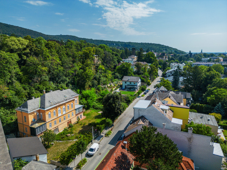 Das Grundstück befindet sich am Fuße des Mitterbergs, in bester Badener Villenlage. Die Lage besticht durch die unmittelbare Nähe zu weiteren Prachtvillen, die noch zu Zeiten der Monarchie in der Kurstadt entstanden sind. Darunter zählt unter anderem die von Otto Wagner errichtete luxuriöse Rainer-Villa, die sich in direkter Nachbarschaft befindet. Baden selbst bietet eine exzellente Infrastruktur mit zahlreichen Einkaufsmöglichkeiten, Restaurants und kulturellen Einrichtungen. Die Stadt ist bekannt für ihre Thermen und Parks, die Erholung und Entspannung versprechen. Zudem verfügt Baden über eine hervorragende Anbindung an das öffentliche Verkehrsnetz, wodurch die Wiener Innenstadt sehr gut mit dem Auto oder der Schnellbahn erreichbar ist.Beschreibung der Immobilie
