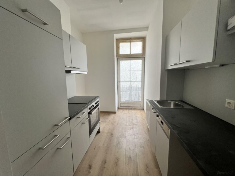 Die Top 3 befindet sich im 1 Obergeschoss und wird über das Stiegenhaus erreicht. Die Wohnung betritt man direkt in den Vorraum. Über diesen gelangt man in die beiden Zimmer sowie die neu möblierte Küche von der aus der Balkon begehbar ist. Das Bad bietet ein WC, Dusche, Waschbecken.