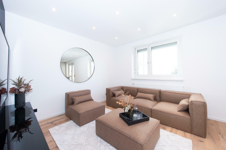 Ein modernisiertes Wohnhaus aus den 70er Jahren, das die Solidität vergangener Jahrzehnte mit der Raffinesse moderner Sanierung verbindet.
