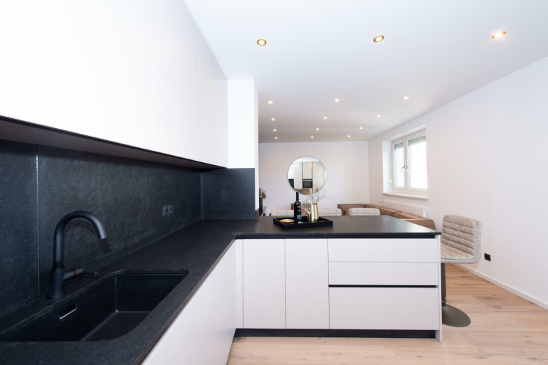 - hochwertige Einbauküche mit Steinarbeitsplatte