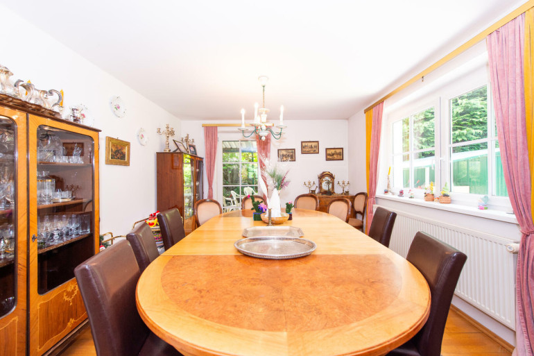 Eingebettet in eine ruhige, grüne Umgebung mit sonniger Westausrichtung und herrlichem Schöckelblick, bietet dieses Anwesen ein Wohnerlebnis der Superlative.