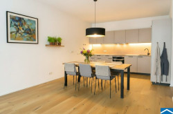 Die Wohnungen sind großzügig geschnitten und zeichnen sich durch sehr intelligente Grundrissgestaltung aus. Alle Wohnungen verfügen über hochwertige Dielenböden in den Wohnräumen, großformatiges Feinsteinzeug in den Nebenräumen und Bädern, externen Sonnenschutz, Fußbodenheizung und eine Sommer-Temperierung. Die Küche ist in der Wohnung nicht möbliert.