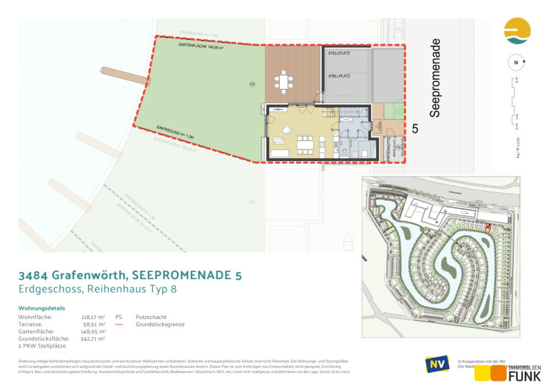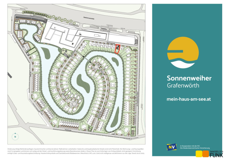 Sich den Traum vom Haus am See erfüllen und 365 Tage Urlaubsfeeling genießen. Das ist möglich im Sonnenweiher Grafenwörth, ca. 30 Fahrminuten von der Stadtgrenze Wiens entfernt, im Herzen der Region Wagram. Ein nachhaltiges, gut durchdachtes Gesamtkonzept, erstklassige Architektur, hochwertige Ausstattung und viel Grünraum fördern das besondere Lebensgefühl am Sonnenweiher. Die Verkehrsanbindung Richtung Wien und Krems (S5, Stockerauer Schnellstraße) sowie nach St. Pölten (S33) ist ausgezeichnet. In der Gemeinde Grafenwörth gibt es ausreichend Einkaufsmöglichkeiten für Güter des täglichen Bedarfs, Kinderbetreuungseinrichtungen und Schulen. In diesem wunderbaren, regionalen Umfeld eingebettet, entstehen an einem mäanderförmig angelegten, ca. 36.000 m² großen See in mehreren Bauabschnitten insges. 170 Wohnimmobilien der Sonderklasse in Form von Einfamilien-, Doppel- u. Reihenhäusern im Eigentum.
