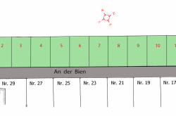 Insgesamt stehen 11 Grundstücke mit einem Ausmaß von 168 m² und 1 Grundstück mit 155 m² zur Verfügung.