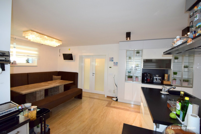 Dieses bietet 235 m² WFL, 4 Schlafzimmer mit eigenen Balkonflächen, auf 4 Ebenen, samt großem Garten und Pool und einer großen Terrasse / Wintergarten (Barbecue, Griller) und 2 PKW Abstellplätze. Der fussboden beheizte vollunterkellerte Wohnkeller bietet weitere Ausweichmöglichkeiten für Freiflächen.