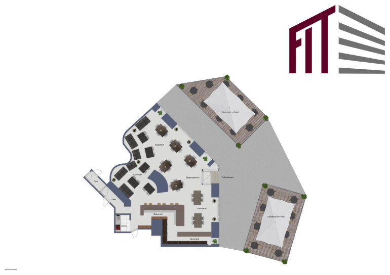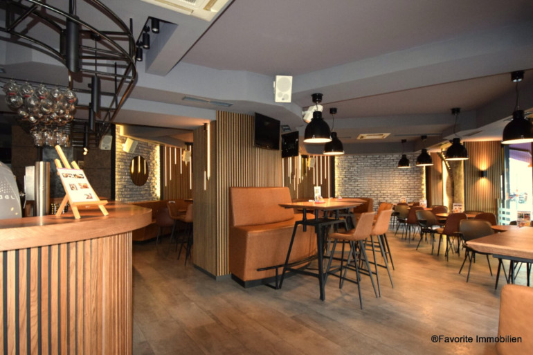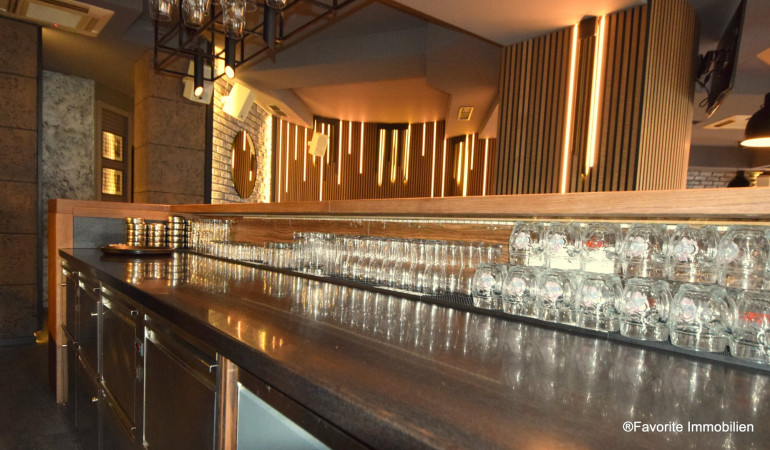 Besonders hervorzuheben ist auch die Bar, die bereits in der Immobilie integriert ist. Diese kann entweder weiter genutzt werden oder auch zu einem anderen Konzept umgestaltet werden. Hier sind Ihrer Kreativität keine Grenzen gesetzt.