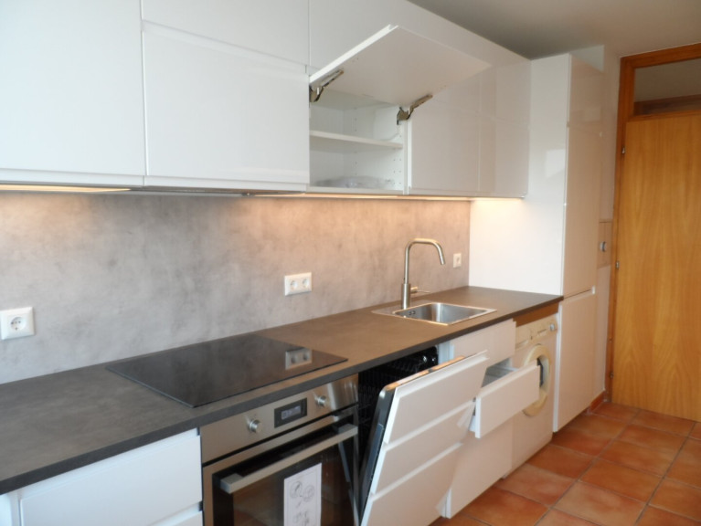 Die neue zweizeilige Küche ist separat angelegt und beinhaltet alle Geräte des täglichen Bedarfs, sowie Fenster nach Außen mit Innenjalousien und Platz für einen Tisch mit Sesseln. Eine Komplettlösung: Kühl- und Gefrierschrank, Geschirrspüler, Herd - Backofen, Cerankochfeld, Dunstabzug, Spülbecken, praktische Schränke, sowie eine Waschmaschine.