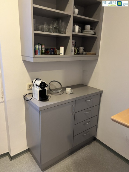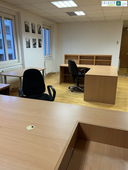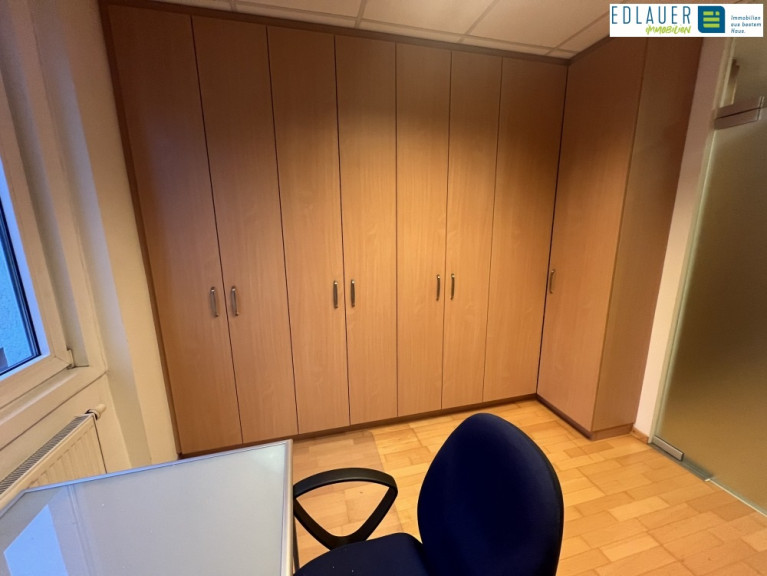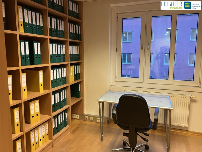 Das im 4. Obergeschoß (mit Lift) befindliche Büro besitzt eine Gesamtnutzfläche von ca. 124 m² und gliedert sich in: Vorraum, 3 Büroräume, Serverraum, Teeküche und 2 WC´s.