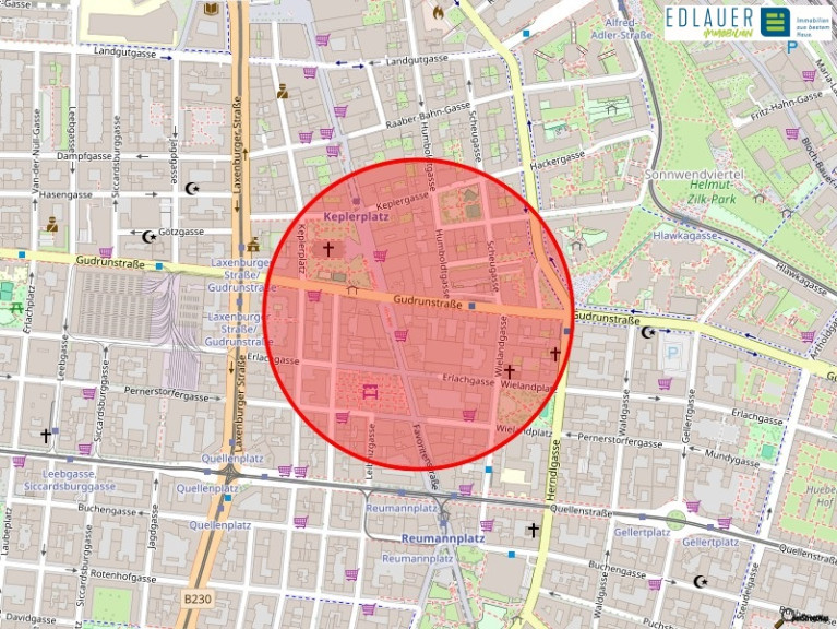 Das Wohn/Bürohaus befindet sich in der Gudrunstraße im 10. Wiener Gemeindebezirk. Besonders erwähnenswert ist die ausgezeichnete Verkehrsanbindung. Sowohl in öffentlicher als auch privater Hinsicht ist die Wohnung sehr gut gelegen. Diese gute Lage spiegelt sich auch auf den Bereich Infrastruktur und Einkaufsmöglichkeiten wider.