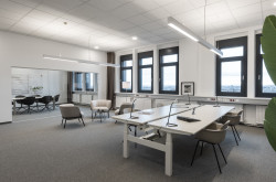 Moderne Ausstattung, hochwertige Materialien und ein innovatives Leuchtkonzept schaffen ein einzigartiges Raumerlebnis. Lichtdurchflutete Räume bringen einen zusätzlichen Wohlfühlfaktor in das Arbeitsumfeld.