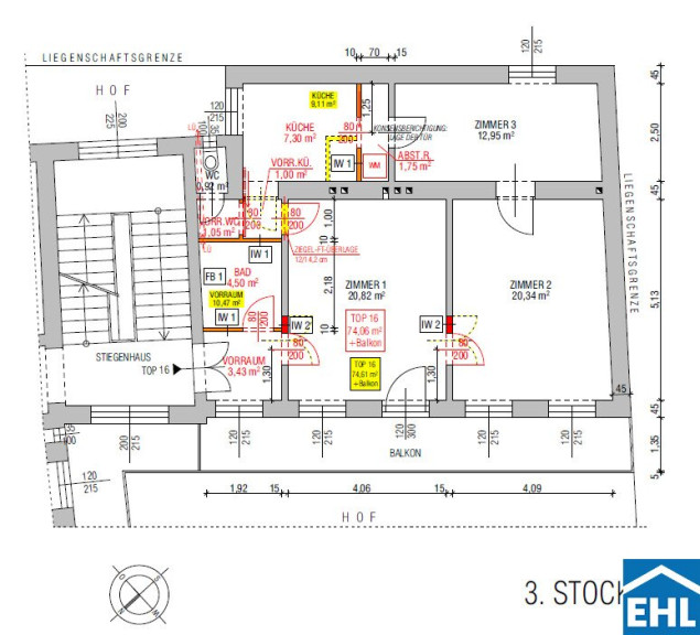 Der ca. 16 m² große hofseitig gelegene Balkon rundet den Wohntraum perfekt ab. Die Wohnung verfügt über Fußbodenheizung und wird mittels Luftwärmepumpe beheizt.