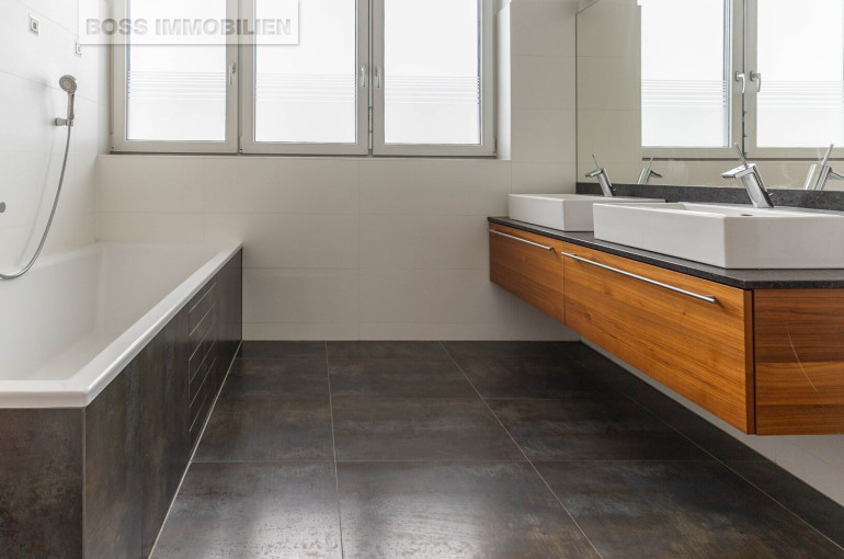 Das Badezimmer erhöht den Wohlfühlfaktor – es verfügt sowohl über eine Badewanne als auch eine barrierefreie Dusche und einen Doppelwaschtisch. Für Sie und Ihre Gäste steht zwei Toiletten zur Verfügung. Eine Waschküche und ein Büroraum integrieren sich ebenfalls perfekt in diese Wohnung.