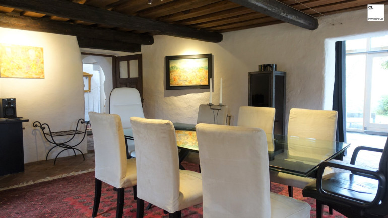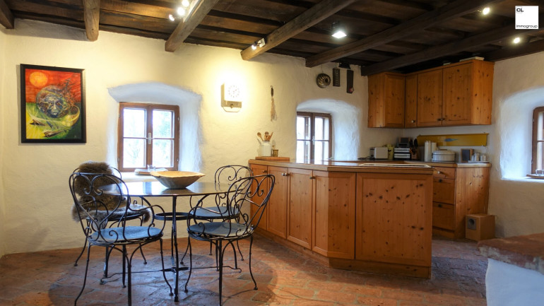 Vom Badezimmer aus erreicht man über eine Stiege den Saunakeller mit Dusche, Tauchbecken und direktem Ausgang ins Freie. Der Technikraum mit Gastherme, Wasserkessel für die beiden Brunnen und Herberge für Waschmaschine und Wäschetrockner befindet sich ebenfalls in diesem Bereich des Hauses. Von der Küche geht man über alte handbehauene Granitstufen in den alten Weinkeller, der ein paar hundert Flaschen Wein aufnehmen kann.