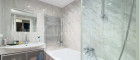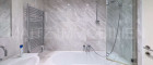 + Bathroom with bathtub; towel radiator, washbasin with vanity unit; toilet